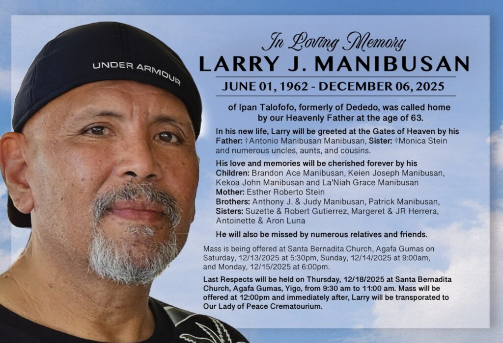 Larry J. Manibusan of Ipan Talofofo, formerly of Dededo, was called home by our heavenly father at the age of 63.
